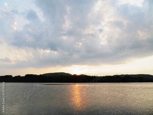 © 史恵 堤, Obraz premium 日本の田舎の風景 7月 川辺の夕景