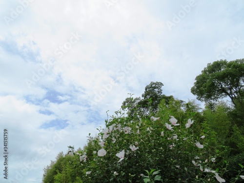 Fototapeta premium 日本の田舎の風景 7月 花 ムクゲ