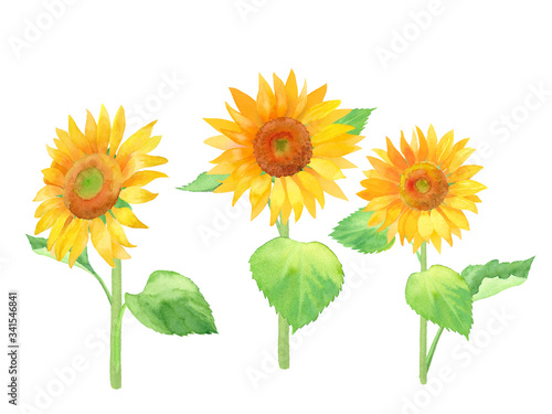 Obraz premium 夏の花:ひまわり水彩イラスト。トレースベクター。