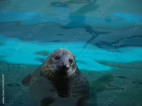 Naklejka premium 水面に浮かぶゴマフアザラシ