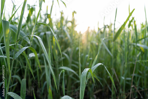 Fototapeta premium 朝5時に撮った朝露の草