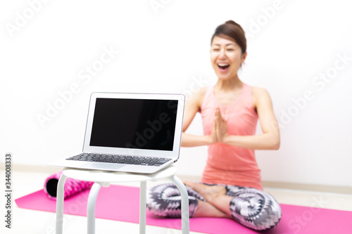© beeboys, Naklejka premium オンライン ヨガレッスン