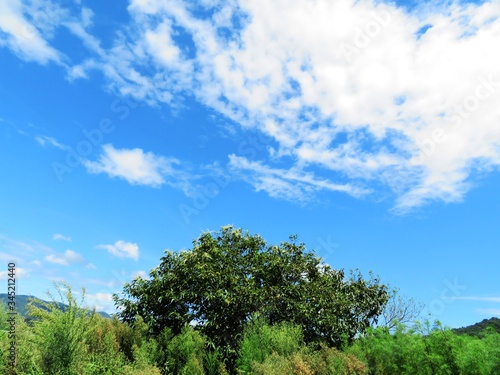 Fototapeta premium 日本の田舎の風景 9月 栗の木と青空