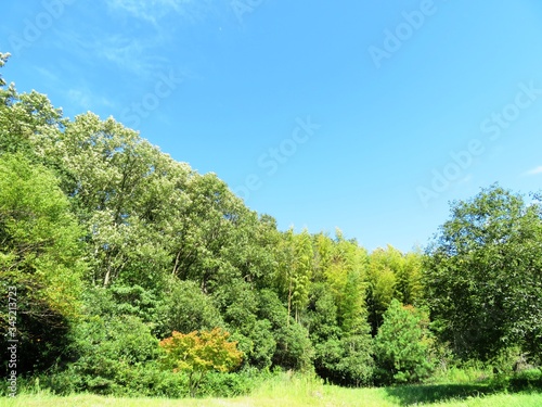 © 史恵 堤, Fototapeta premium 日本の田舎の風景 9月 初秋 山の木々