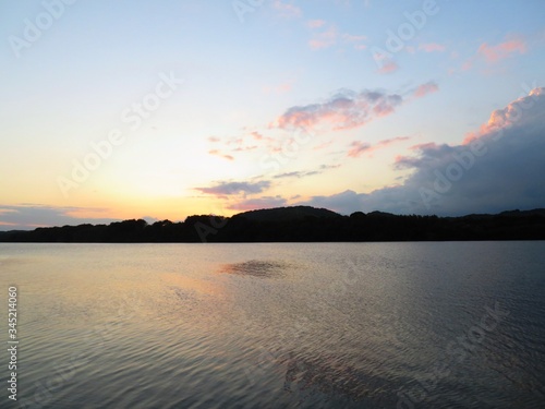 Obraz premium 日本の田舎の風景 9月 川辺の夕景 空を映す水鏡
