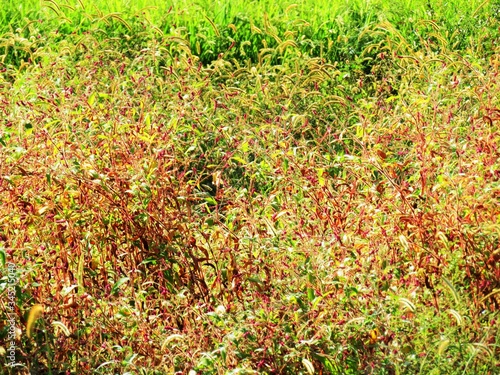 Obraz premium 日本の田舎の風景 9月 草 タデの紅葉
