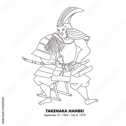 Fototapeta premium 竹中半兵衛(1544 – 1579) 日本の歴史 人物 線画イラスト