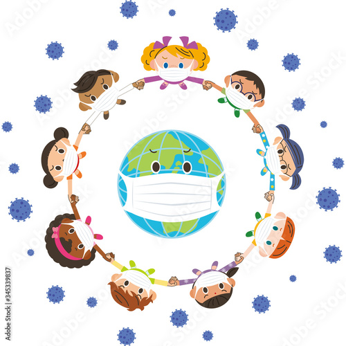 © yoshi5, Obraz premium 地球と人々がウイルス感染をブロック