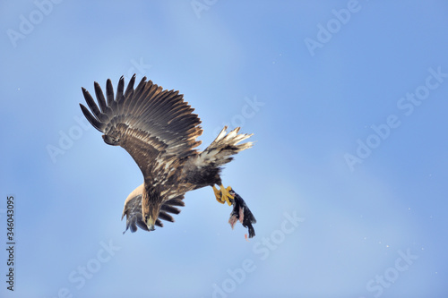 Obraz premium 魚を捕らえたオジロワシ(北海道・知床)