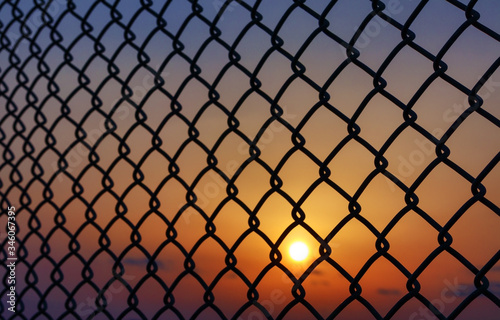Fototapeta premium フェンス 夕日 素材