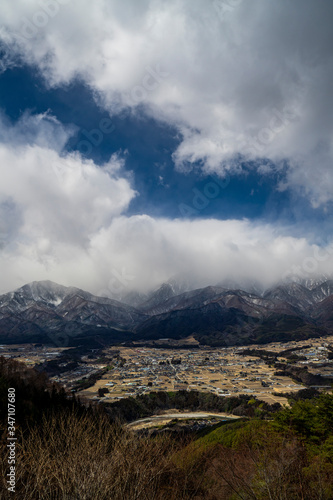 Naklejka premium 陣馬形山から見える飯島町の遠景