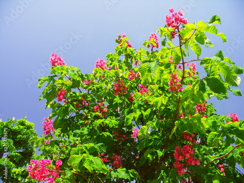 Obraz premium 花咲くベニバナトチノキと青空