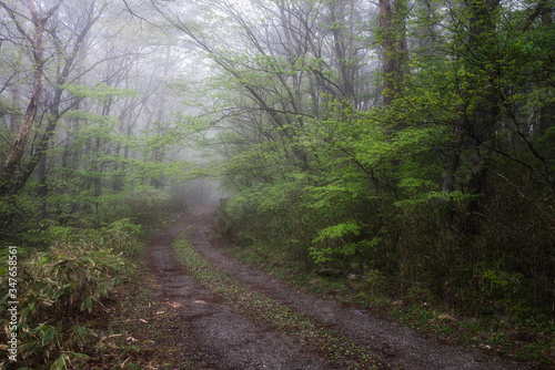 © 優樹 八嶋, Obraz premium 霧がかった新緑の林道