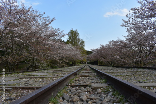 © k, Obraz premium 線路と桜
