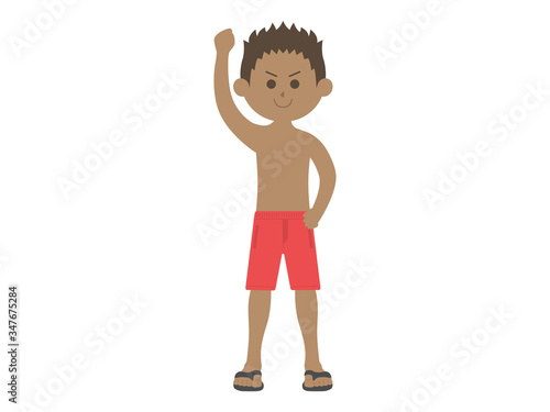 © R-DESIGN, Obraz premium 片手を上げた水着男性のイラスト