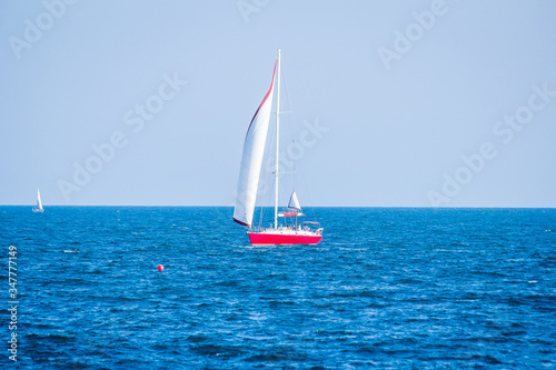 Naklejka premium красивая яхта в Черном море возле берега Одессы большое судно