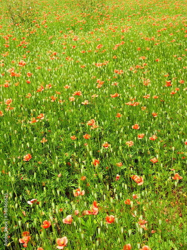 Fototapeta premium 野原のナガミヒナゲシ咲く風景