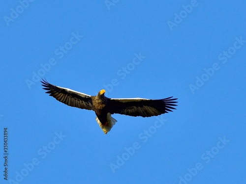 Naklejka premium 青空バックに悠然と飛ぶオオワシの飛翔シーン