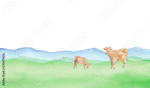 Naklejka premium 牛のいる風景