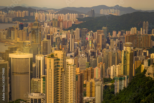 Obraz premium ヴィクトリア・ピークから見える香港の高層ビル群