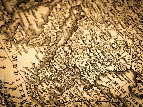 © moonrise, Fototapeta premium アンティークの世界地図 ギリシャ
