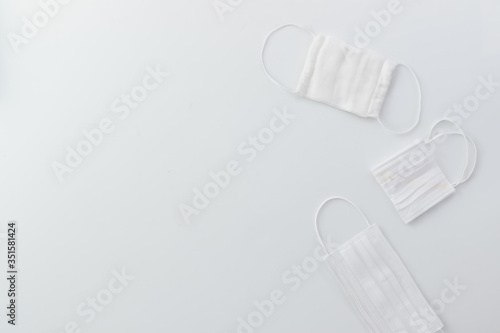 Obraz premium 真俯瞰で置かれた三つのマスク