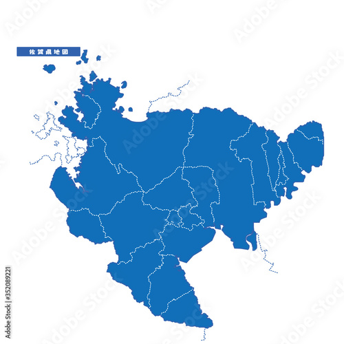 © suzumeclub, Obraz premium 佐賀県地図 シンプル青 市区町村