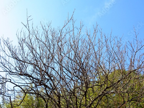 Obraz premium 日本の田舎の風景 12月 裸木と青空