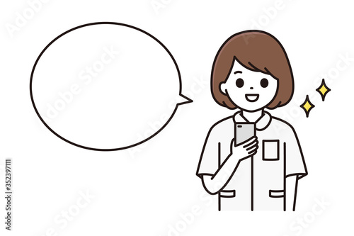 Fototapeta premium 看護師 スマートフォン 吹き出し イラスト