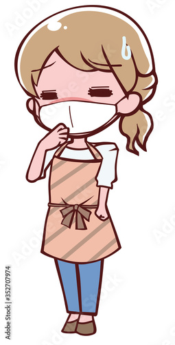 Fototapeta premium 風邪をひいて体調不良のアニメ調のエプロン姿の女性