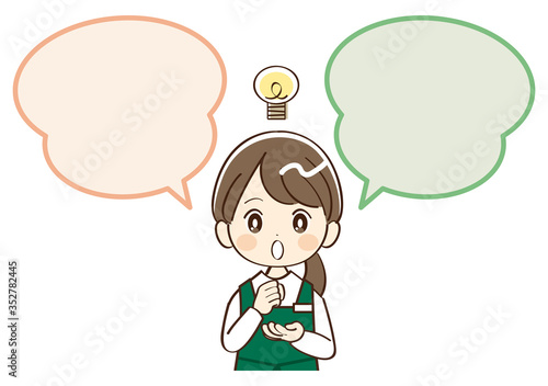 © 松浦 お順, Obraz premium 女性、店員、吹き出し、閃く