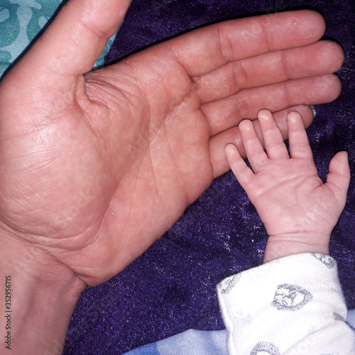 © Abdou, Obraz premium يد طفل حديث الولادة مع يد ابيه