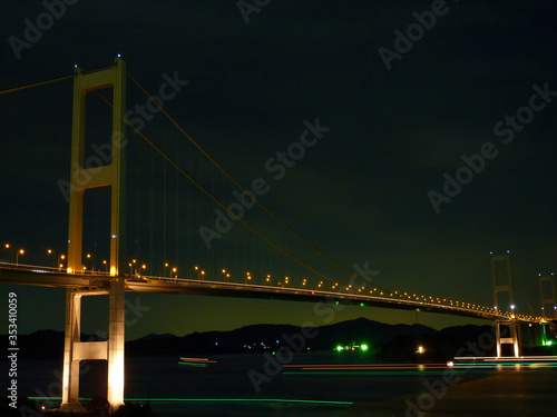 © Kazuhiro.Kimura, Fototapeta premium 橋, 建築, 夜, しまなみ海道, ランドマーク, 空, 青, 海, ライトアップ