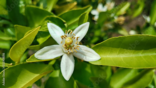 Obraz premium 한국 제주도 귤나무 귤꽃