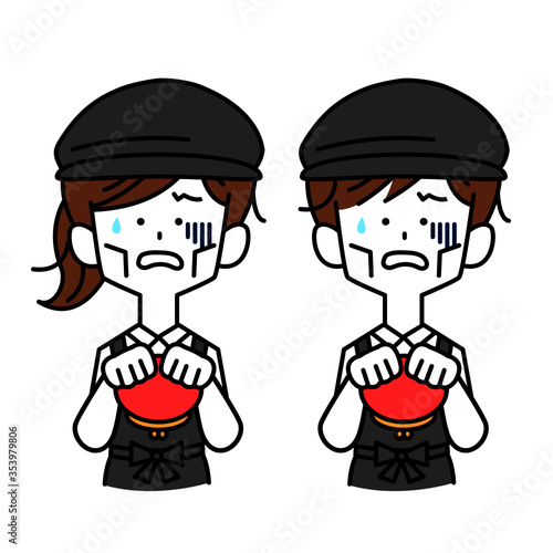 © Ameashi, Obraz premium お金に困りやせ細った男女の店員