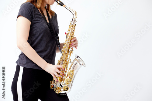 Fototapeta premium サックスを演奏する若い日本人女性