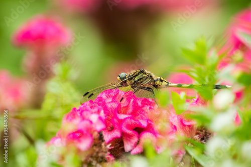© Bogey Yamamoto, Fototapeta premium 真夏のある日、鶏頭の花にトンボが止まってひと休み