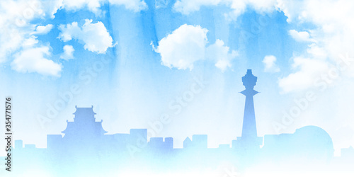© J BOY, Fototapeta premium 大阪 水彩 名所 背景