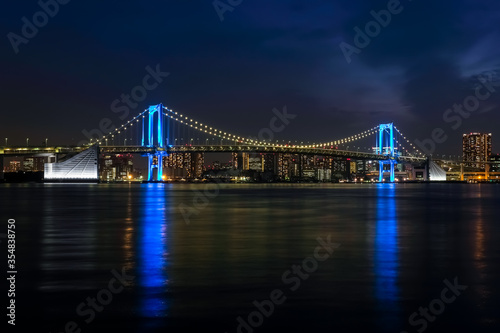 Fototapeta premium レインボーブリッジの夜景 ブルーライトアップ 豊洲ぐるりパークから
