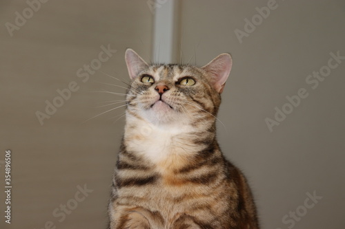 © chie, Obraz premium 上を向いている美しい猫アメリカンショートヘア