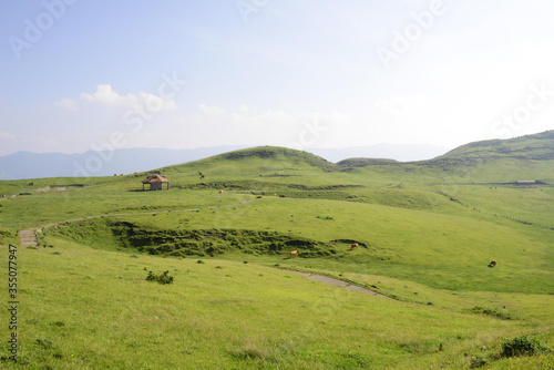 Fototapeta premium 牛と馬と草原 熊本県阿蘇