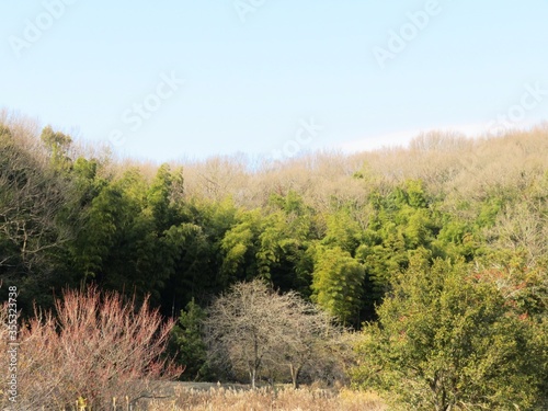 © 史恵 堤, Obraz premium 日本の田舎の風景 1月 冬の山の木々と青空