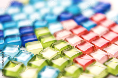 © michikodesign, Obraz premium 無造作に置かれたカラフルで四角いガラスタイル