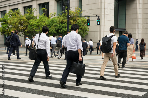 Obraz premium 東京駅、丸ノ内の緊急事態宣言解除後の通勤風景