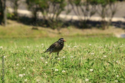 © tenboh siyaraku, Fototapeta premium 地上で遊ぶムクドリ 地上で遊ぶ椋鳥 地上で遊ぶむく鳥