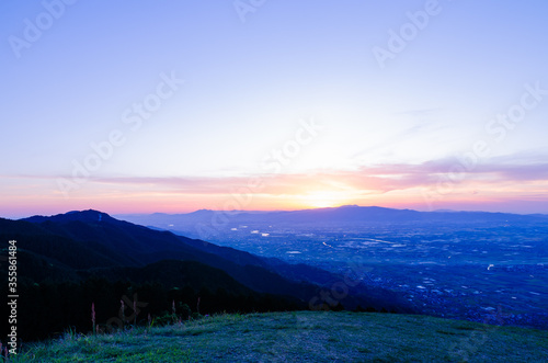 © RK-79-2, Obraz premium 山に沈む夕焼けと河と平野