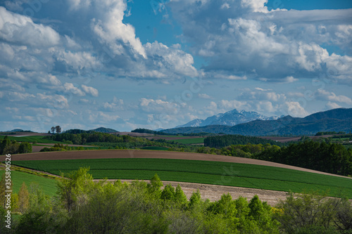 Obraz premium 新緑の美瑛の丘と素敵な雲