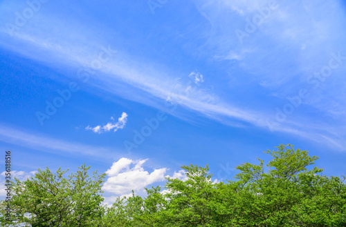 © kikisora, Obraz premium 山の木と青空 高ボッチ高原