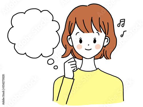 © クリモト, Obraz premium 想像する若い女性 吹き出し 音符