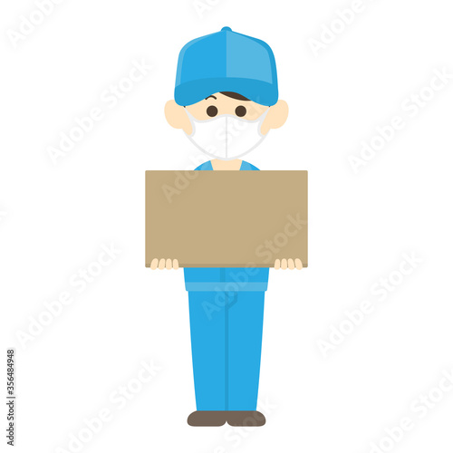 Obraz premium マスクをした荷物を届ける配達員のイラスト